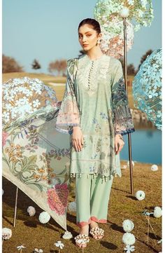 - Dresses: Sadabahar Lawn fabric is often used to make dresses that are lightweight and airy, making them perfect for hot weather.